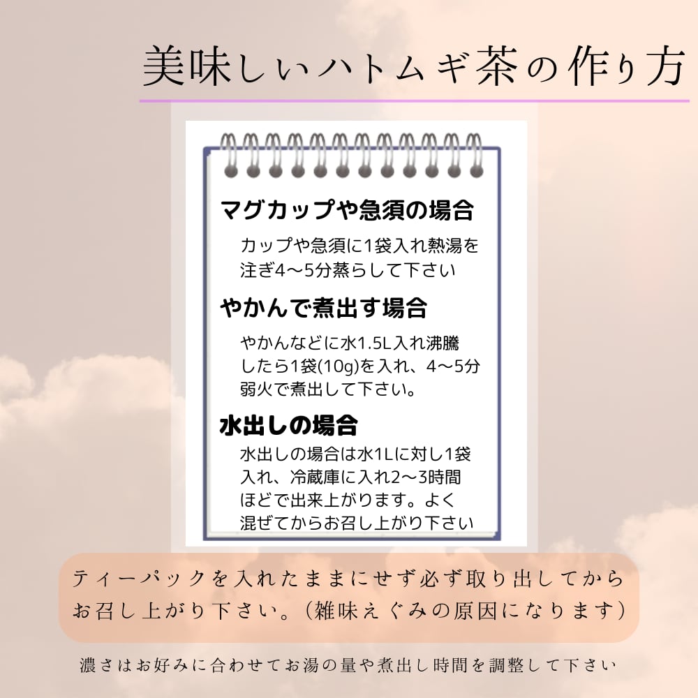 【使用方法】1.5Lの水を沸騰させてから入れ、4〜5分弱火で煮出しお召し上がり下さい。