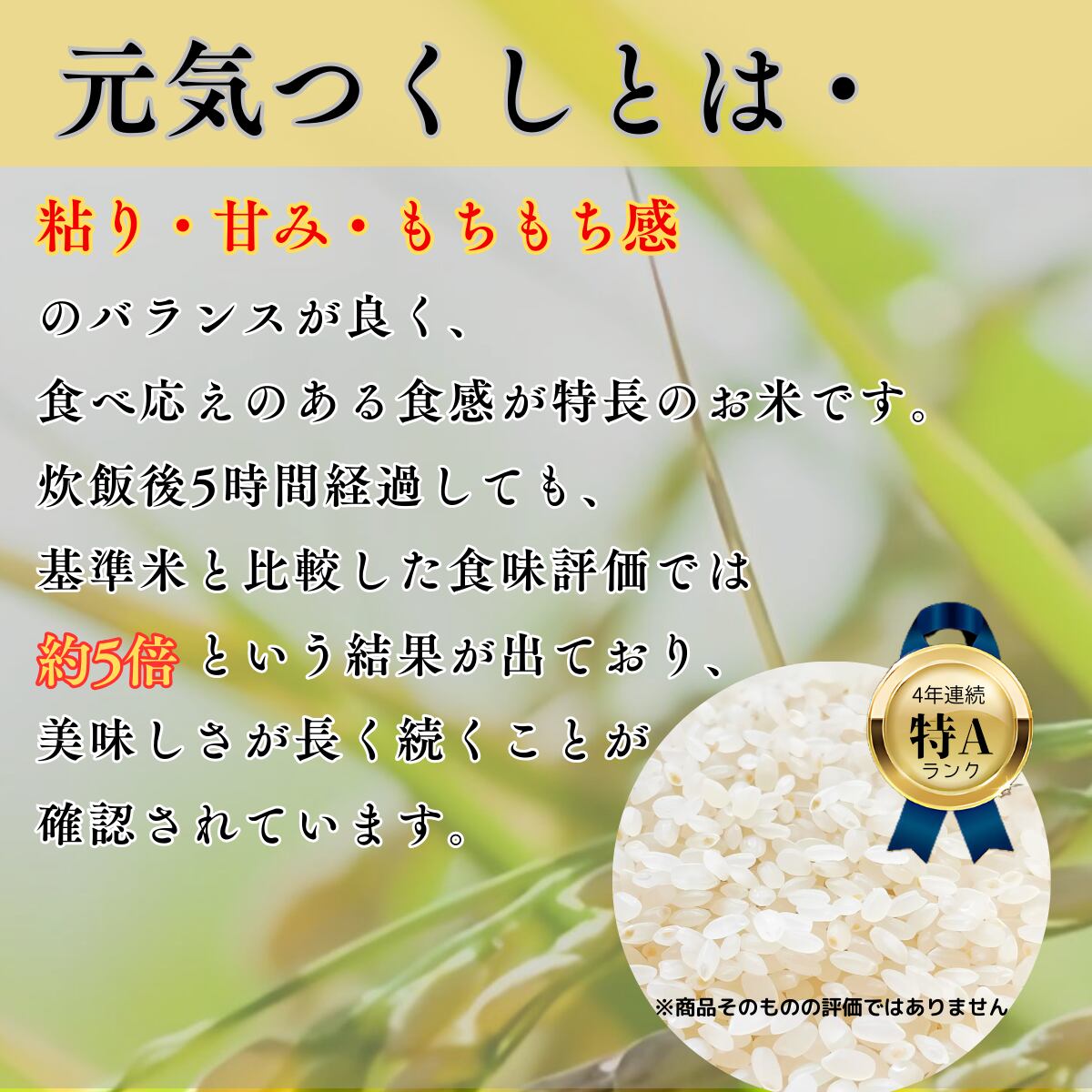 ◆ 5年産食味検定 特A獲得(4年連続)