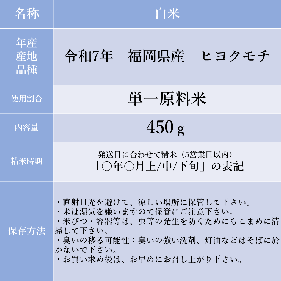 【特選もち米】福岡県産ヒヨクモチ 450g|令和7年産 新米|もちもち粘り・冷めても柔らかい|おこわ・赤飯・餅用|3合 お試し