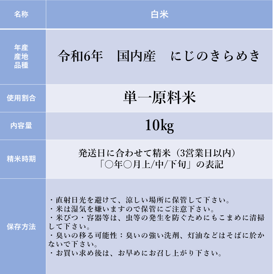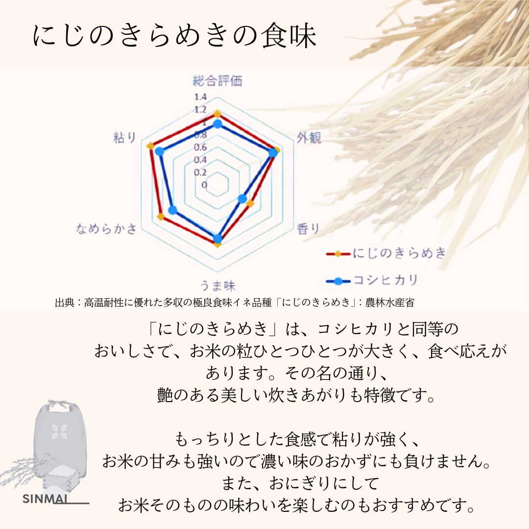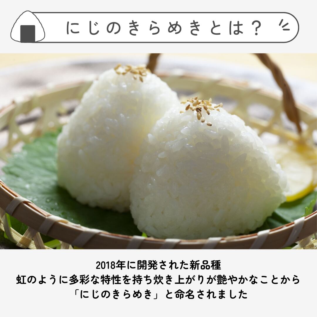 「にじのきらめき」は、コシヒカリと同等のおいしさで、お米の粒ひとつひとつが大きく食べ応えがあります。